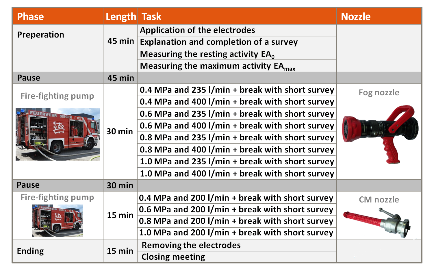 The difficulty lies in the fact that for many branchpipes a certain minimum working pressure is set, but this must be limited to the top, to ensure safe operation of the jet by the fire-fighters. The aim was to determine the physiological strain responses at different water pressures and flows in order to derive the maximum allowable pressure for a given amount of water for fire-fighting.