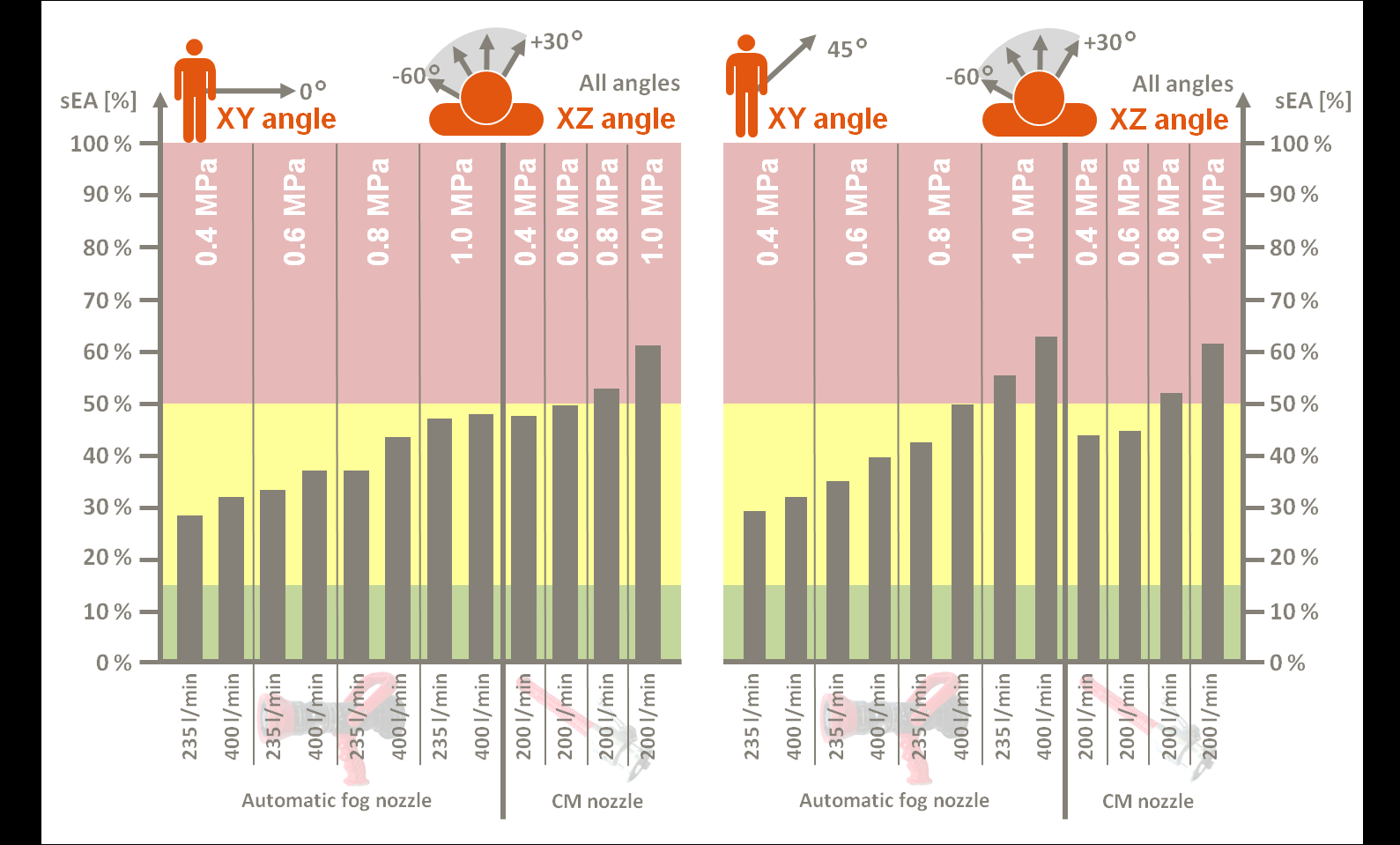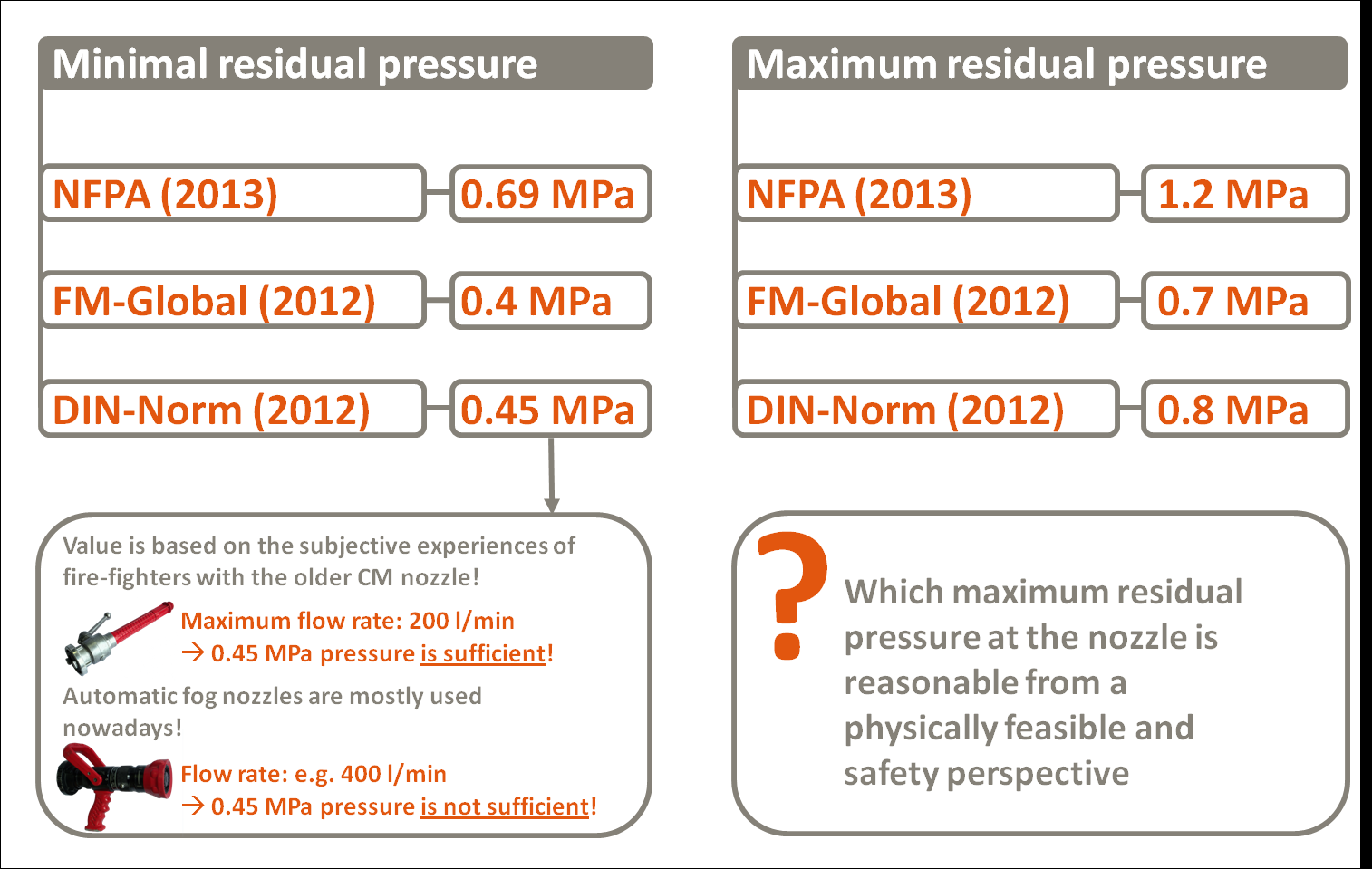 Based on these results, the maximum pressure for the fire water supply should be limited to 0.6 MPa/6 bar, in order to ensure the branchpipes most efficient working and safe as well as precise fire extinguishing.