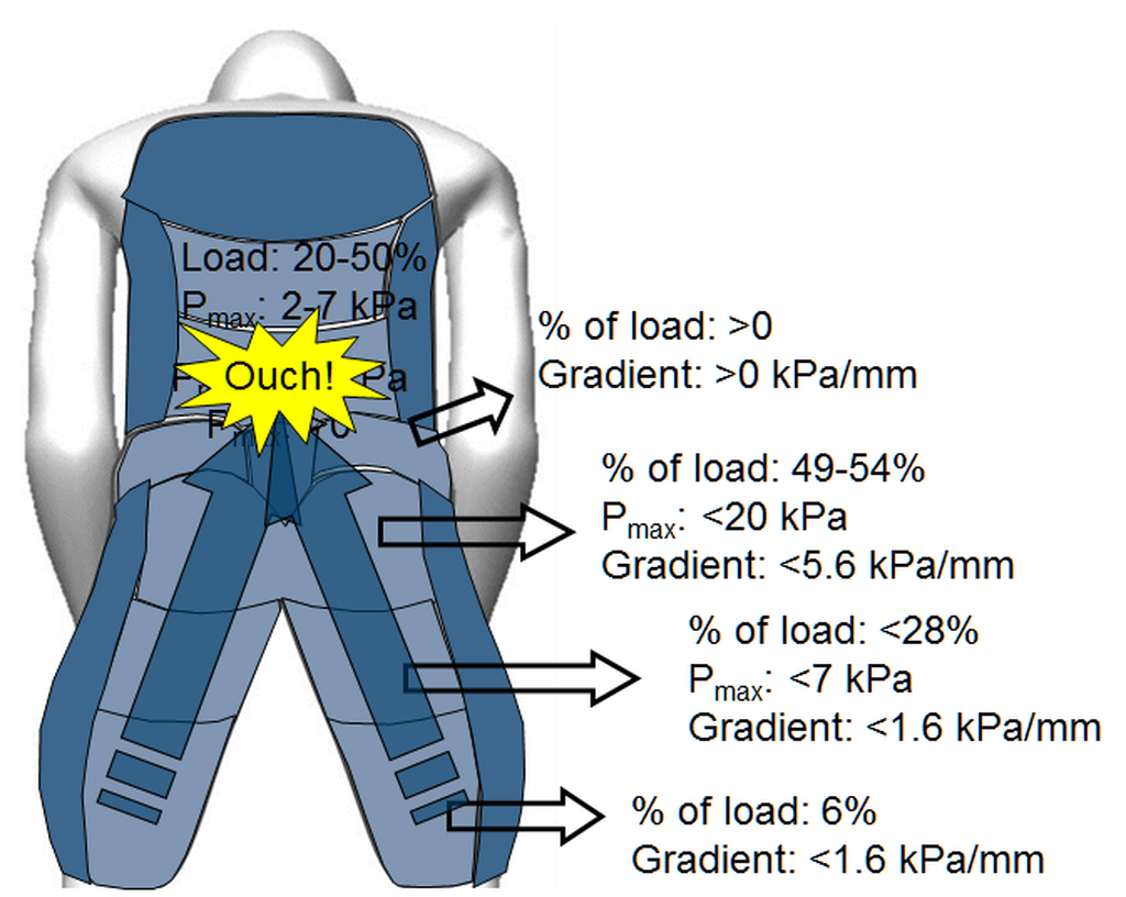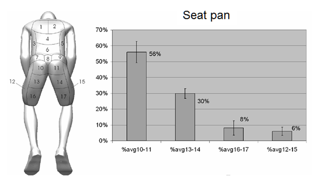 - Pressure distribution is an important parameter for seat comfort and can be influenced by seat developer: