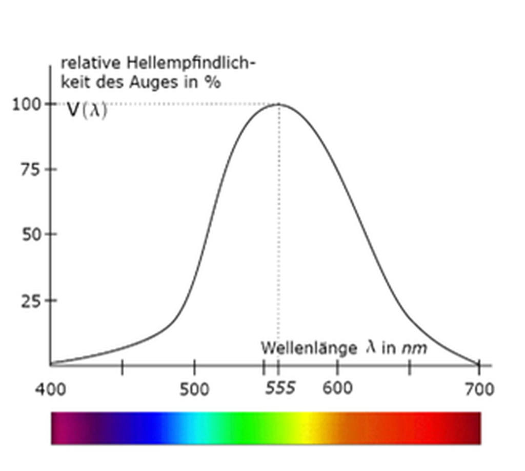 Die höchste Wahrnehmungsempfindlichkeit des Auges beim Menschen liegt bei 555 Nm die im vorherrschend grünen Wald durch das Tragen von Gelbglasbrillen optimal bedient wird. Grauspiegelbrillen sind bei hoher Lichtintensität in der Lage Lichtkegel auszuschalten und den Kontrast (3-D Sehen) durch „Hinzuschalten“ der Stäbchen zu verbessern.