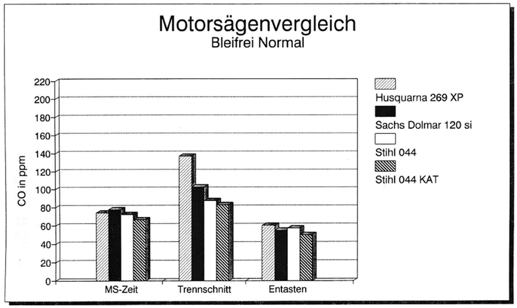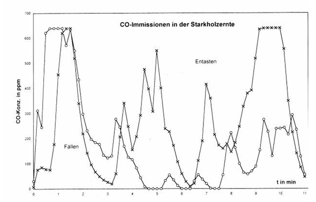 Die Gefahrstoffverordnung vom 26. August 1986 setzte die Arbeitgeber in die Pflicht Gefährdungen zu ermitteln und zu bewerten sowie die Ergebnisse zu dokumentieren und die Betroffenen zu informieren. Anfänglich kritisierten die Motorsägenhersteller die epidemiologischen Studien massiv und die Arbeitgeber spielten die Problematik herunter. Ein kompetentes Netzwerk, bestehend aus dem Institut für Arbeits- und Sozialhygiene in Göttingen und dem IAS in Karlsruhe, konnte dieser Situation begegnen. Seit 1990 wurden an der HAWK in Göttingen mobile Messverfahren für Kohlenmonoxid und Blutgasanalyse entwickelt. Die Messgeräte der Fa. Bayer Diagnostik, DOSITOX und das Blutgasmessgerät der Fa. Radiometer kamen vor Ort im Wald zum Einsatz. In den Abgasen von 2-Takt-Motoren befinden sich zahlreiche giftige Substanzen. Dabei stellt Kohlenmonoxid mit 70% den Hauptanteil. Nach der Inhalation bindet sich das Kohlenmonoxid an den Blutfarbstoff Hämoglobin, der den lebensnotwendigen Sauerstofftransport im Körper gewährleistet. Da die Bindung des Kohlenmonoxids 200x fester ist als die des Sauerstoffs, wird die Sauerstoffversorgung rasch verschlechtert. Die Vergiftungsgefahr durch das geruch- und farblose Kohlenmonoxidgas steigt mit zunehmender Konzentration in der Luft und der Dauer der Inhalation (Exposition).
