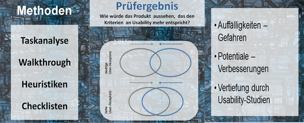 Ein Produkt ist zur Marktreife gelangt. Viele Hürden wurden überwunden - die Technik funktioniert einwandfrei, alle gesetzlichen Vorgaben sind erfüllt, das Design ist ansprechend usw.. Und doch stimmt etwas nicht. In der Kundenbetreuung und im Vertrieb tauchen häufig die gleichen Fragen auf. Anekdoten kursieren, die verdeutlichen, dass das Produkt häufig nicht so verwendet wird wie das geplant war. Die vorgesehenen Nutzer fühlen sich nicht in erwartetem Ausmaß von dem Produkt angesprochen. Ein Usability Basis-Check könnte weiterhelfen und mögliche Unstimmigkeiten an der Mensch-Maschine-Schnittstelle aufzeigen. Was ein solcher Check beinhaltet und welche Methoden zur Anwendung kommen ist Inhalt des folgenden Beitrages.