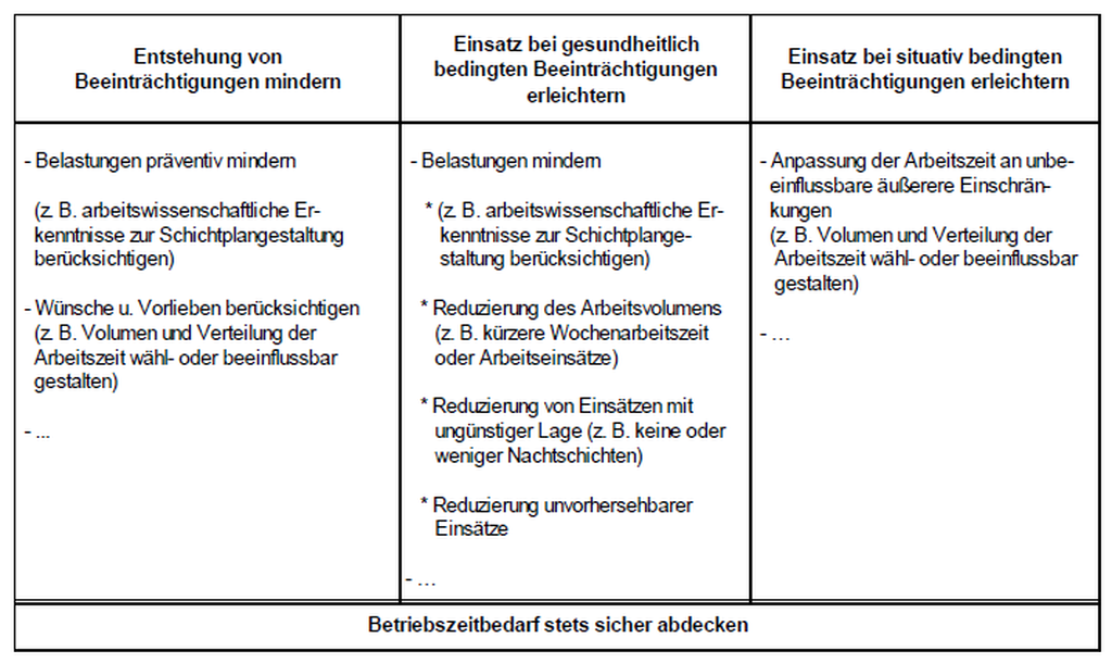 - Länge der Schichten den Arbeitsbelastungen anpassen.