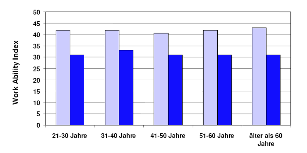 - die Ø Arbeitsbewältigungs-fähigkeit der Mitarbeiter abnehmen und