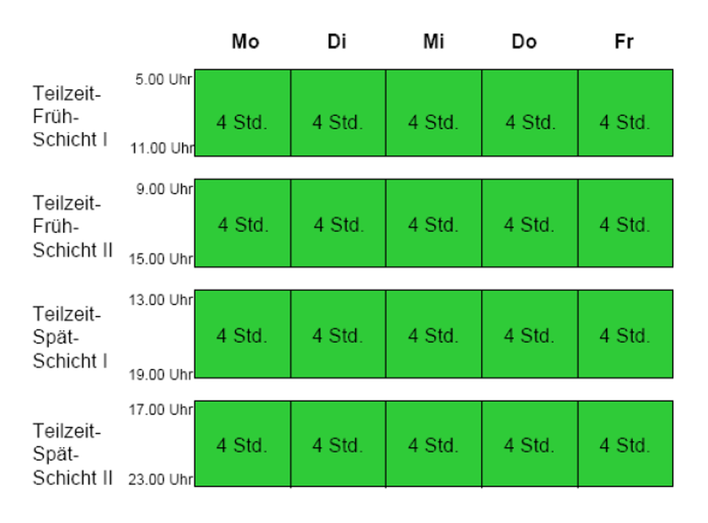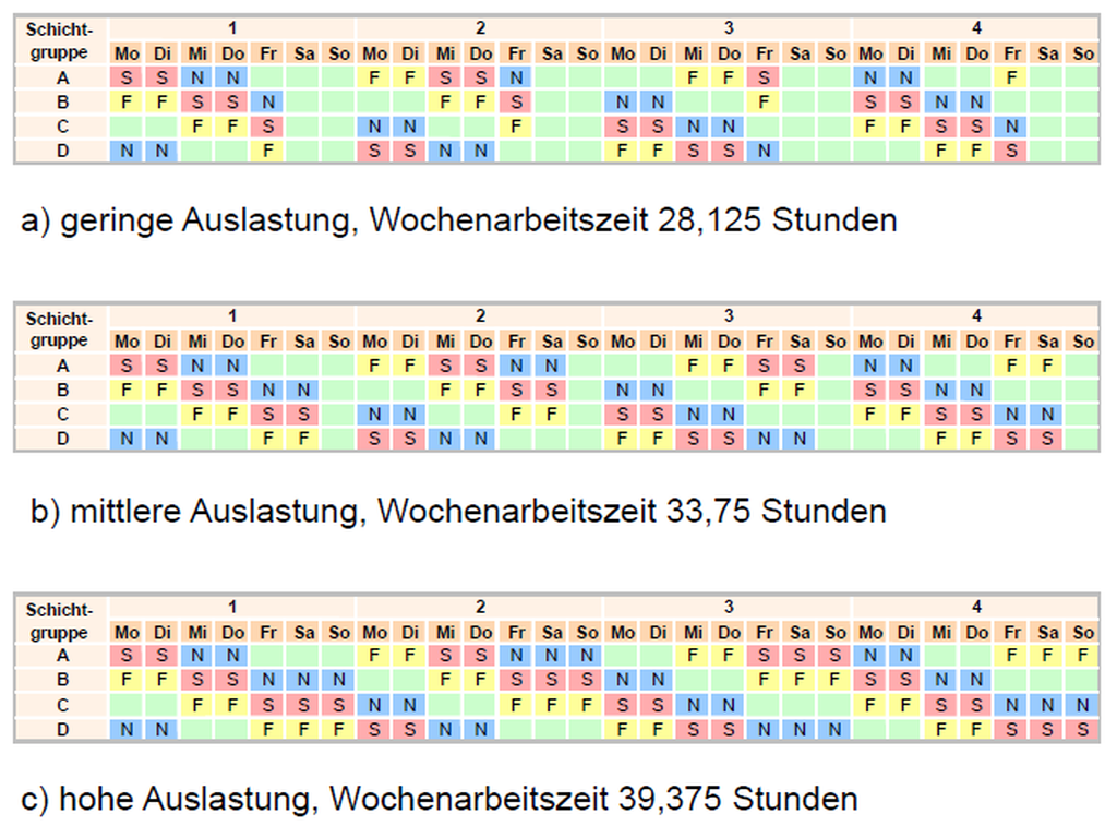 Arbeitszeit- und Einsatzbedingungen für unterschiedliche Auslastungszustände sind im
