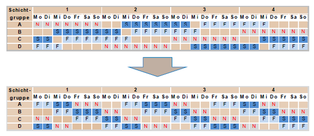 Abbildung 6: Arbeitswissenschaftliche Empfehlungen Beispiel Schichtplanumstellung