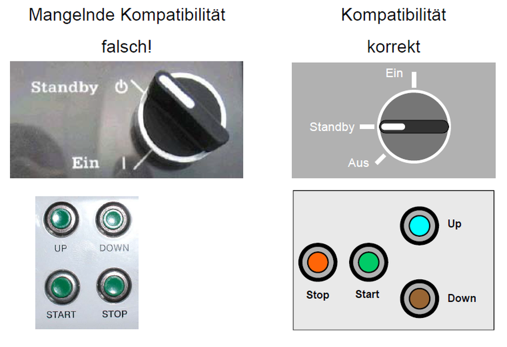 Abbildung 15: Anordnung von Bedienelementen:Zwei Beispiele, die Anwender verwirren