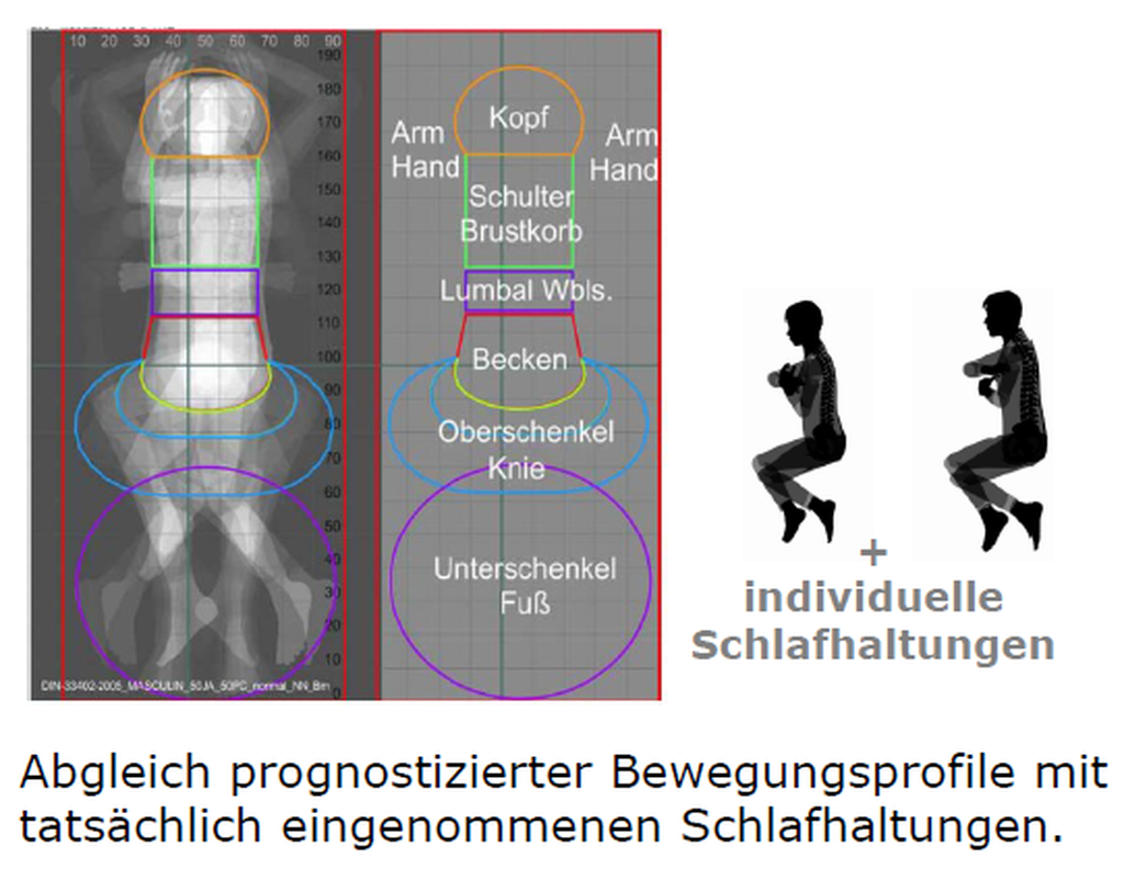 - Abgleich zwischen Matratzenzonen und Menschen in verschiedenen Haltungen