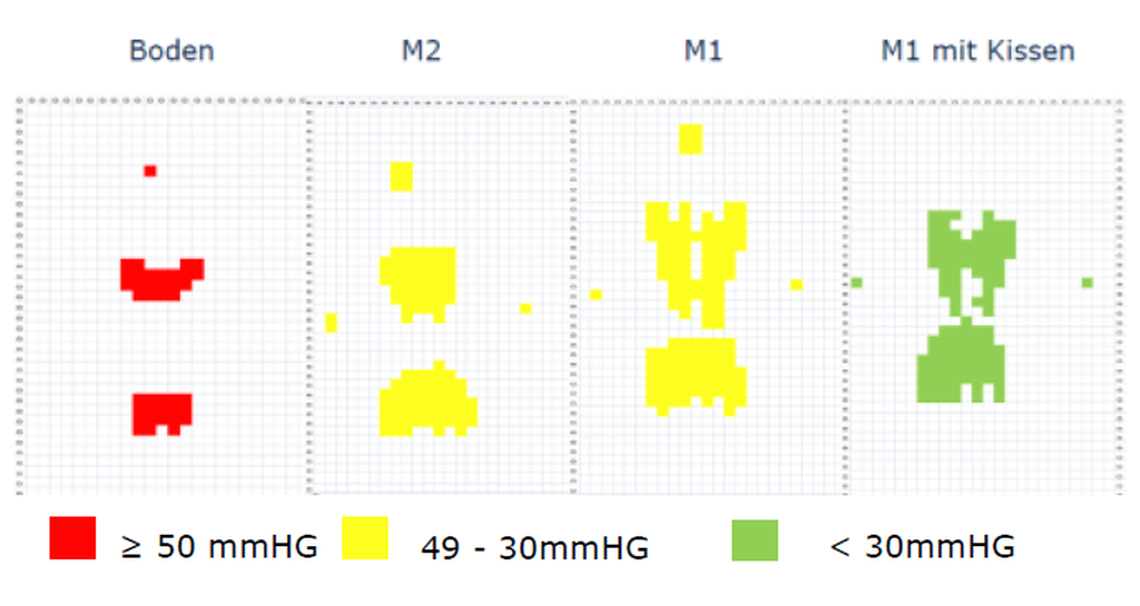 - Druckabnahme mit erhöhter Kontaktfläche zw. Körper und Matratze