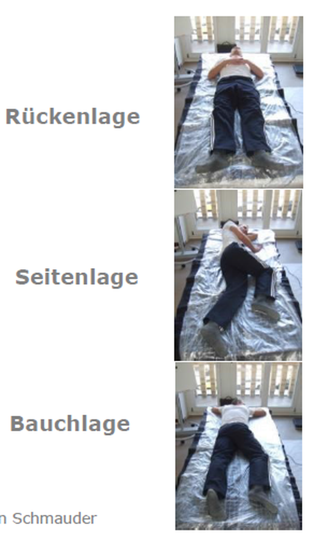 - Nachbildung verschiedener Schlafhaltungen je Proband